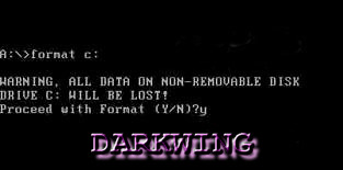 أيضا سيعمل قرص بدء التشغيل فترة من الوقت عندئذ سيتوقف عن العمل ويعطيك الإمتداد ( A:\ ) الآن عليك كتابة الأمر التالي : ( A:\format C: ) ولابد من وضع مسافة بين ( format ) و ( C: ) ثم اضغط زر الإدخال ( Enter ) بعدها ستأتيك رسالة تأكد من فرمتة الدرايف ( C ) أكتب ( Y ) واضغط ( Enter ) كما هو واضح أمامك في الصورة التالية :